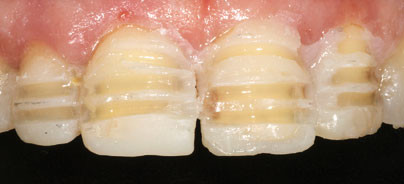 Hinsichtlich der Zahnerhaltung sollte im Rahmen einer adhäsiven Befestigung beachtet werden, dass die Haftung am Zahnschmelz der Haftung am Dentin überlegen ist. Daher sollten Techniken bevorzugt werden, die den Erhalt des Schmelzes unterstützen. Um ein ästhetisches Ergebnis zu erlangen, sollte das Mock-up die Basis der Behandlung darstellen.