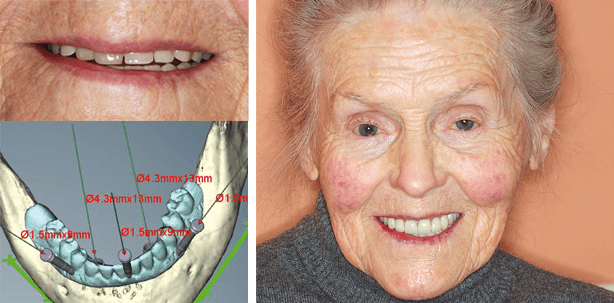 In diesem Beitrag wird die Behandlung einer älteren Patientin (95 Jahre) vorgestellt, die ein mit Totalprothesen versorgtes Gebiss vorwies und sich implantatgetragenen Zahnersatz für mehr Halt und eine besser Ästhetik wünschte.