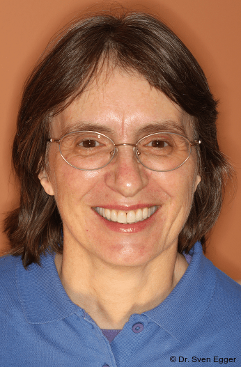 - Zahnfarbe: Die Zahnfarbe entpricht ganz den Vorstellungen der Patientin (A2, VITA).