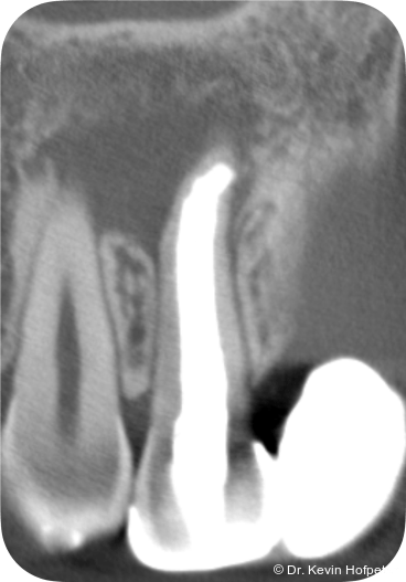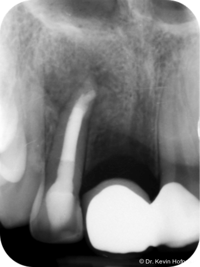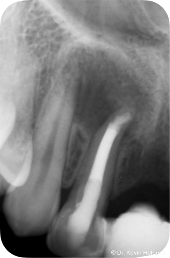 Der vorliegende Fall zeigt, dass selbst ausgedehnte apikale Läsionen erfolgreich orthograd behandelt werden können. Entscheidend hierfür sind eine strukturierte Vorgehensweise, eine ausreichende Spülung und Desinfektion des Kanals und ein dichter apikaler Verschluss mit biokompatiblen Materialien.
