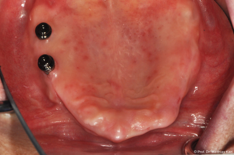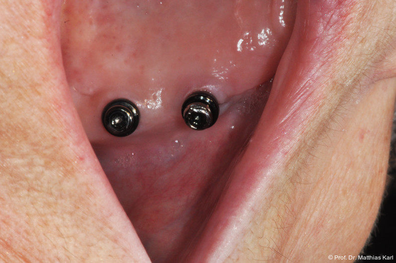 Die Insertion von zwei zahnärztlichen Implantaten zur Verankerung einer abnehmbaren Deckprothese stellt eine kosteneffektive Therapie dar, welche die Kaufunktion verbessert und zu hoher Patientenzufriedenheit führt, weshalb diese Versorgung in mehreren Ländern als „standard of care“ angesehen wird.1, 6, 14 Die dabei genutzten Verankerungselemente, welche die Prothese mit den Implantaten abnehmbar verbinden, sind entscheidend für den Prothesenhalt, die Patientenzufriedenheit und den klinischen Erfolg.14 Stege, Kugelkopfanker und Locatoren werden hierfür häufig genutzt und führen zu einer Verbesserung der mundbezogenen Lebensqualität.4–6, 14 Die in Deutschland weitverbreiteten Doppelkronensysteme konterkarieren aufgrund der hohen Herstellungskosten die Grundidee einer kosteneffektiven Grundversorgung.8, 10, 15