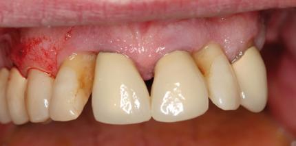 Die Implantation im parodontal vorgeschädigten Gebiss empfiehlt sich bisher als zweizeitiges Vorgehen.