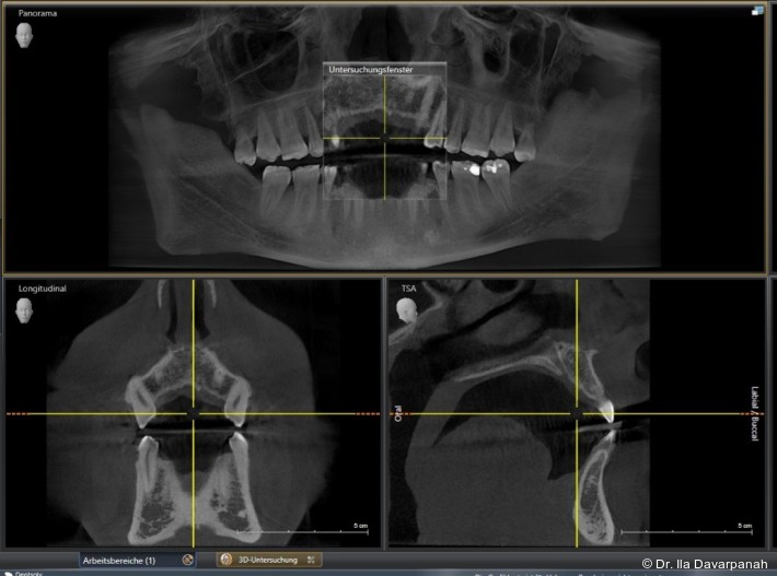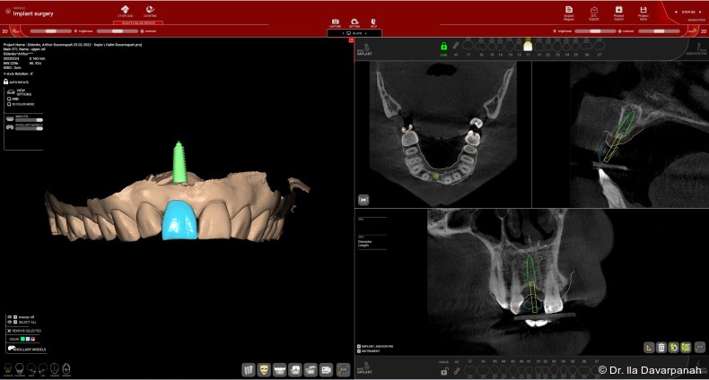Neben patientenbezogenen und chirurgischen Faktoren spielt dabei auch das Implantatdesign eine wesentliche Rolle. Die vorliegende Falldokumentation zeigt eine Sofortimplantation Regio 11 mit digitaler Planung anhand von DICOM- und STL-Daten. Die präoperative Planung erfolgte softwaregestützt, die Implantatposition wurde prothetisch orientiert festgelegt. Klinisch und radiologisch lagen günstige Ausgangsbedingungen für eine Sofortimplantation mit Sofortversorgung vor.