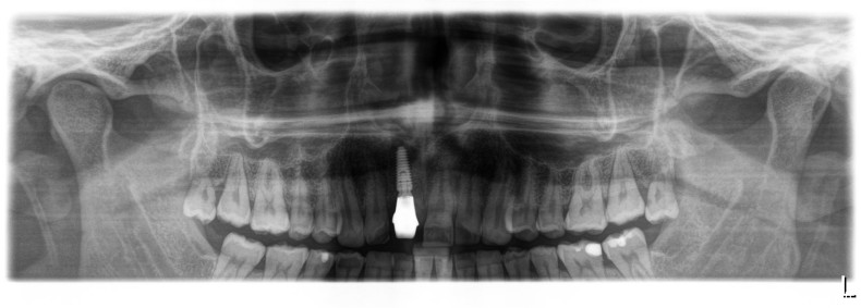 Die postoperativen Verlaufskontrollen zeigten stabile periimplantäre Verhältnisse ohne weitere Komplikationen. Die Osseointegration sowie die Weichgewebesituation stellten sich unauffällig dar.