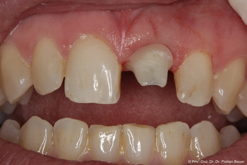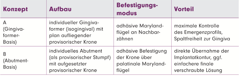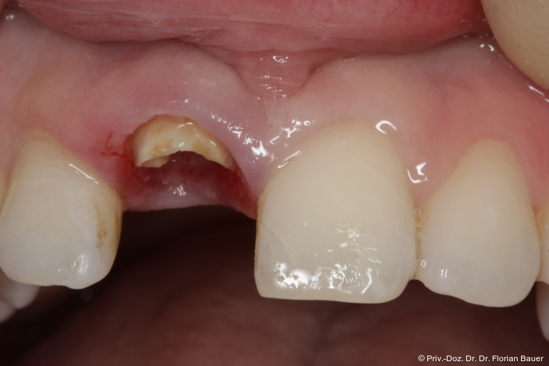 Die sofortige Implantation nach Zahnextraktion im ästhetisch anspruchsvollen Frontzahnbereich stellt eine besondere Herausforderung dar. Um eine optimale Versorgung zu gewährleisten, ist eine multidisziplinäre Herangehensweise erforderlich, die sowohl die Retention des Weichgewebes als auch die mechanische Stabilität des frisch gesetzten Implantats berücksichtigt. Aufgrund der anfänglich niedrigen stabilen Verankerung im Kieferknochen ist eine Übergangsphase ohne funktionale Belastung entscheidend für den erfolgreichen Heilungsprozess und die Osseointegration des Implantats.