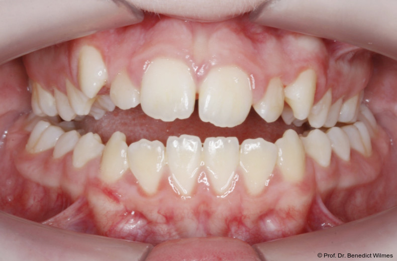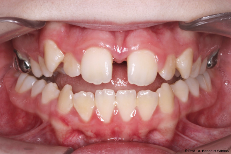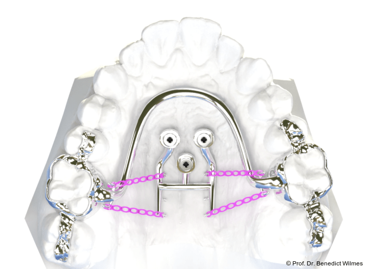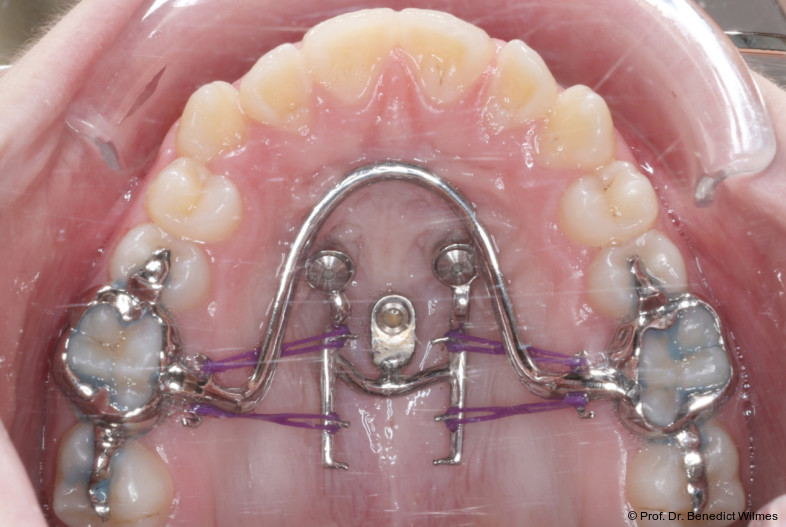 Die Verwendung von skelettal verankerten Apparaturen zur Distalisierung oder Mesialisierung beim Schließen von Lücken ist mittlerweile weltweit etabliert. Mechanismen zur Molarenintrusion oder Gaumenerweiterung zur Vermeidung chirurgischer Maßnahmen in Grenzfällen wurden ebenfalls mehrfach beschrieben. Fälle, bei denen mehrere ausgeprägte kieferorthopädische Probleme vorliegen, stellen nach wie vor eine besondere Herausforderung in der Kieferorthopädie dar. Aufgrund der hohen Stabilität von Miniimplantaten im anterioren Gaumen kann man diese dementsprechend auch für mehrere Aufgaben nutzen. Dabei gibt es zwei verschiedene Möglichkeiten zur Mehrfachnutzung von TADs (temporary anchorage devices):