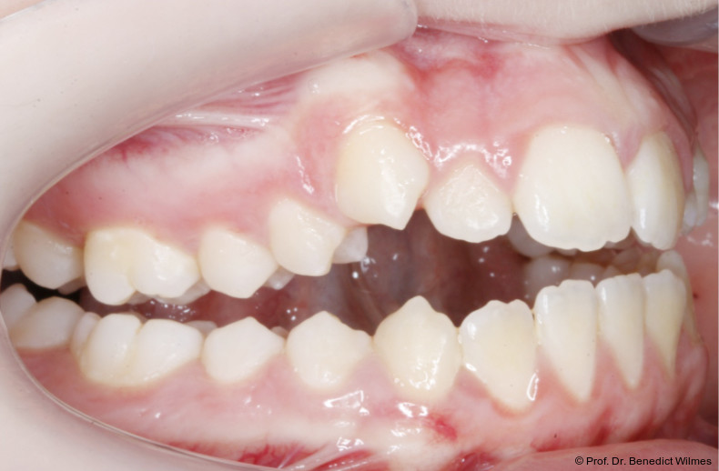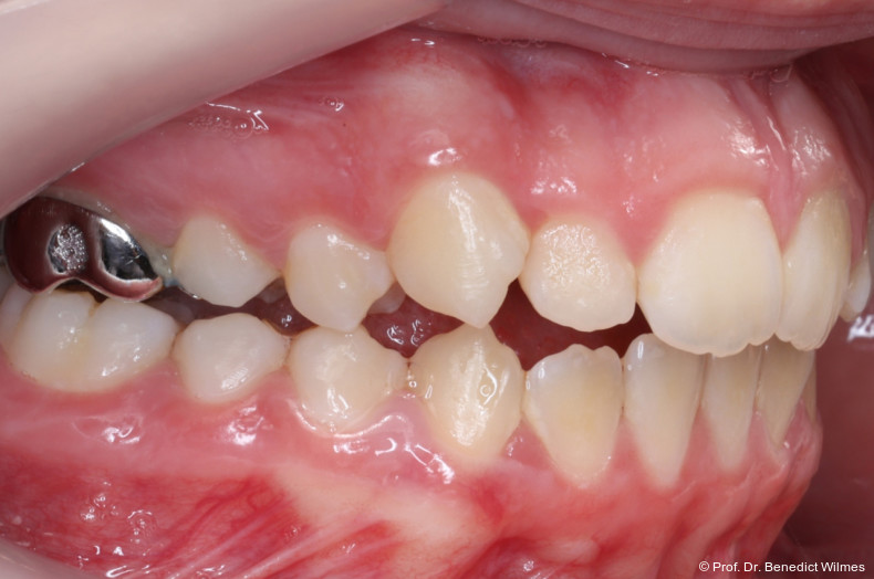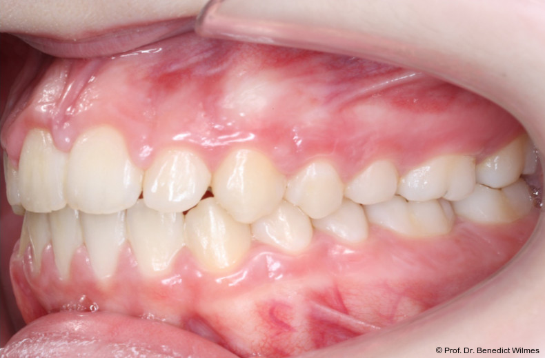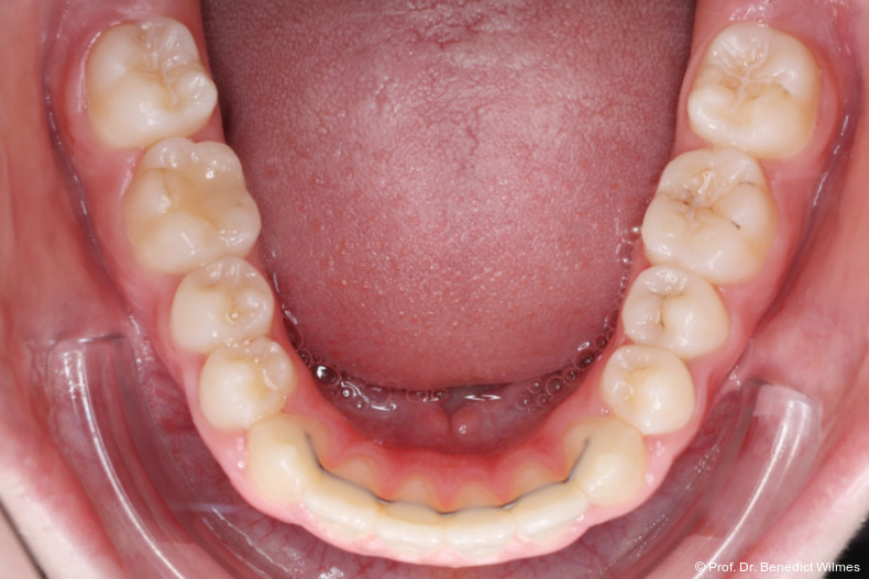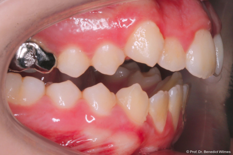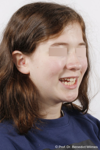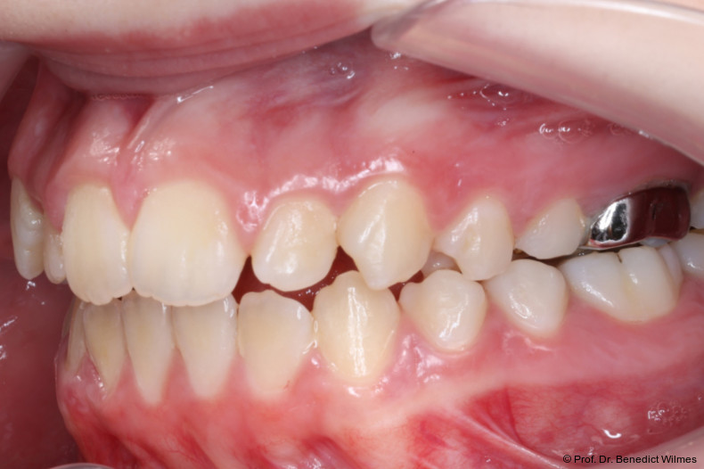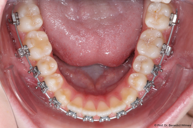 Als alternative Therapie wurde die chirurgische Korrektur des offenen Bisses nach Abschluss des Wachstums vorgeschlagen. Eltern und Patientin entschieden sich allerdings für die nonchirurgische und weniger invasive Molarenintrusion.