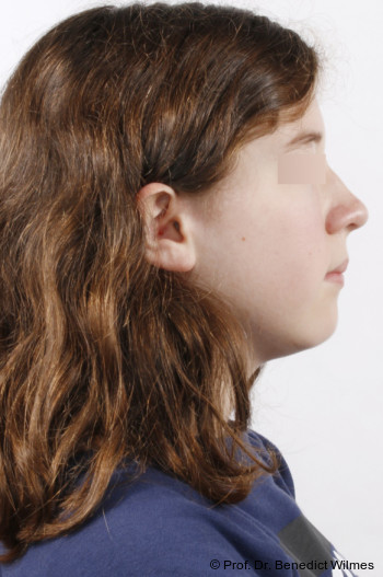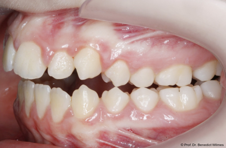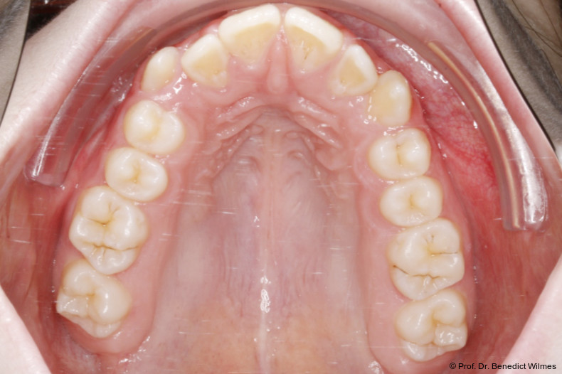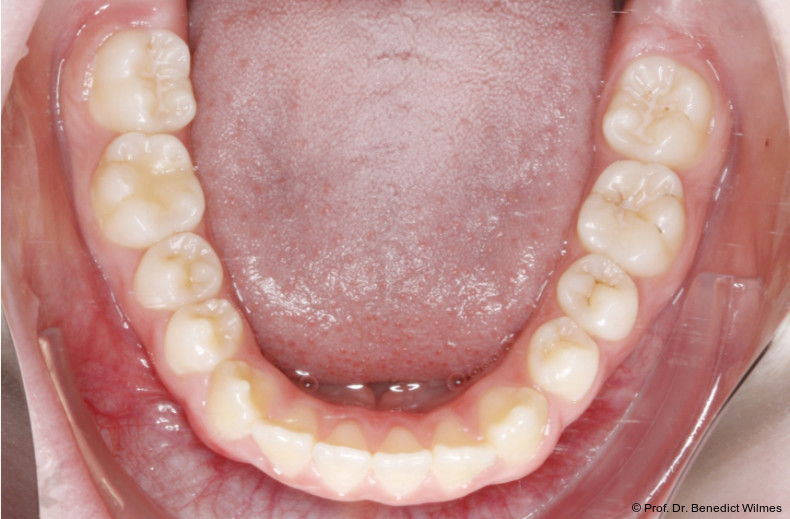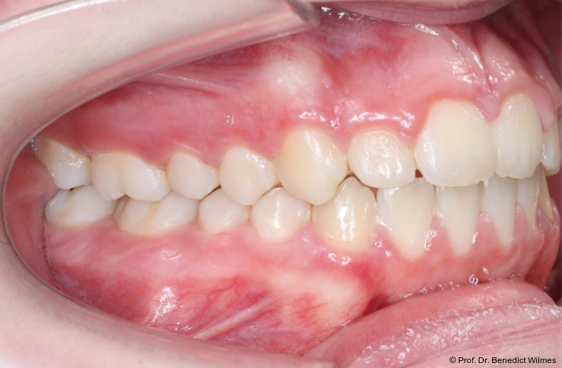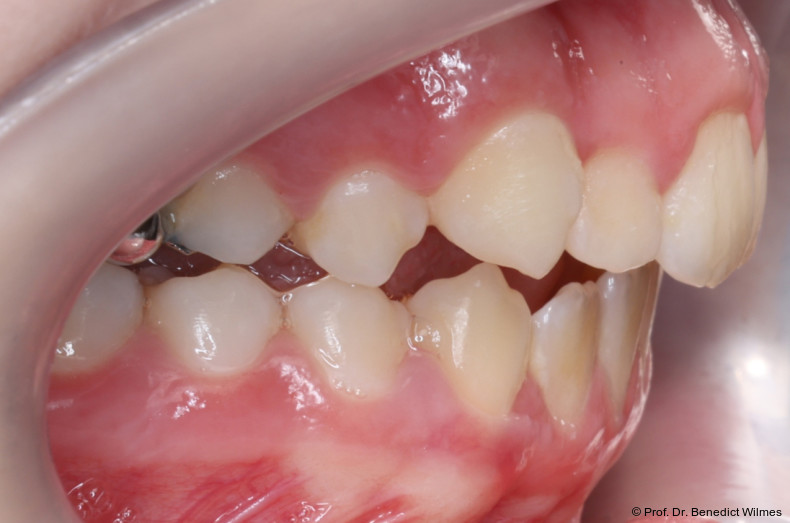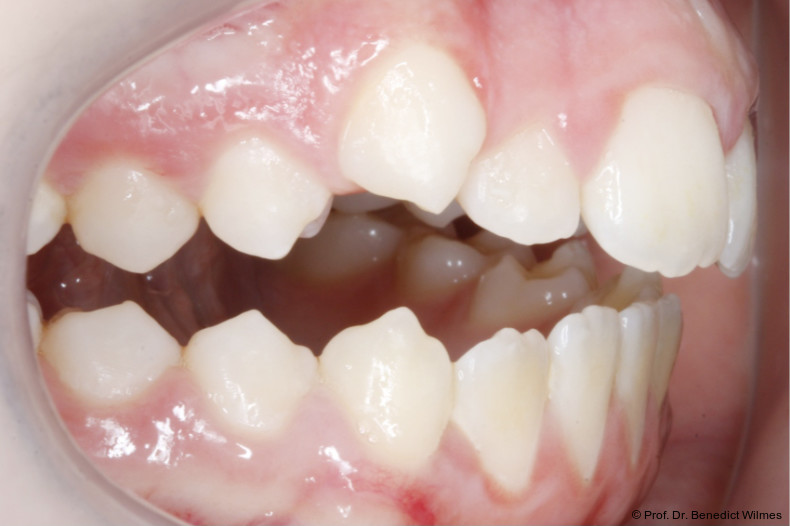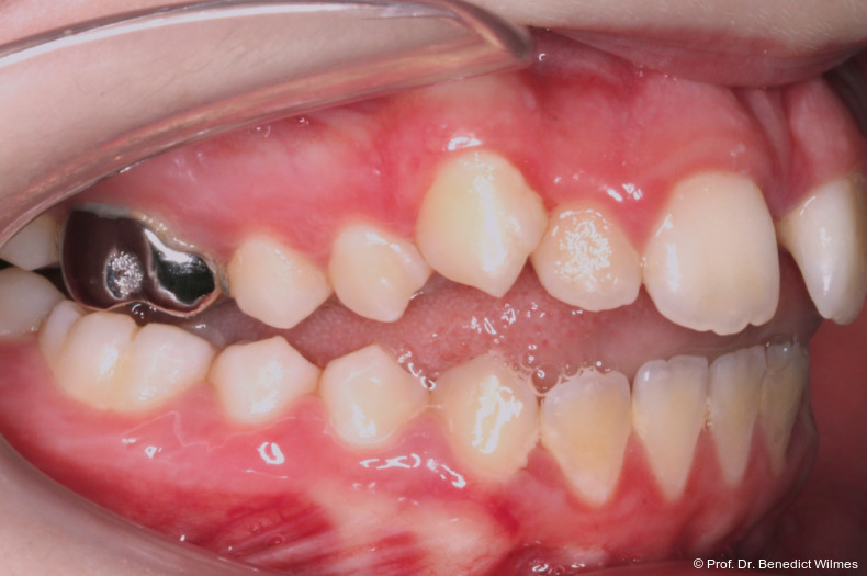 Als alternative Therapie wurde die chirurgische Korrektur des offenen Bisses nach Abschluss des Wachstums vorgeschlagen. Eltern und Patientin entschieden sich allerdings für die nonchirurgische und weniger invasive Molarenintrusion.
