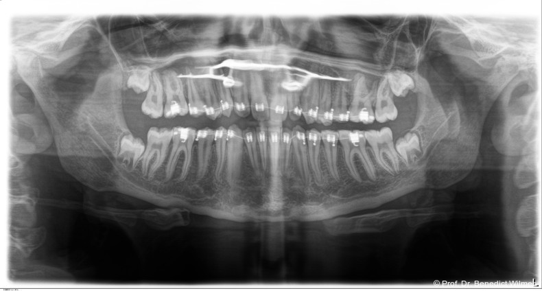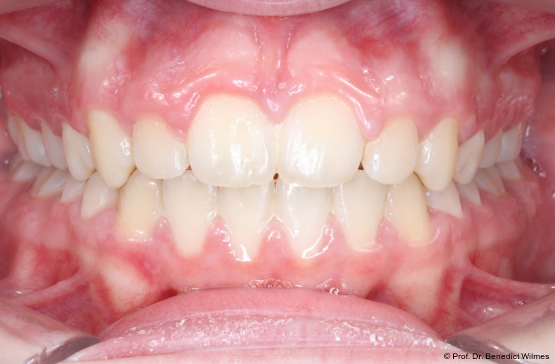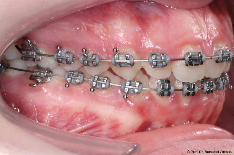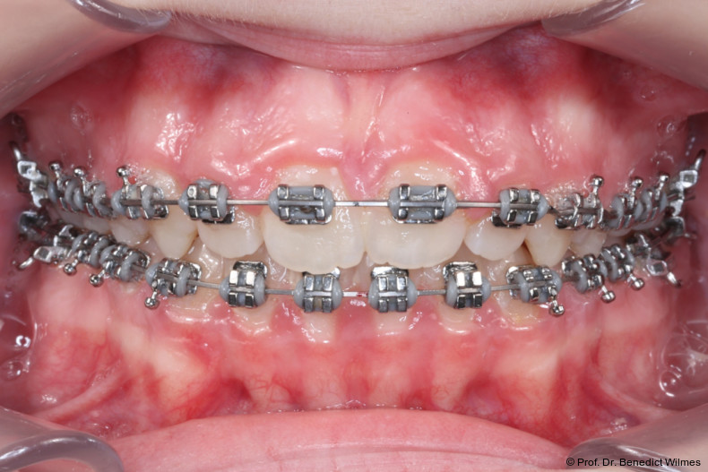 Das vorliegende Patientenbeispiel demonstriert eindrucksvoll den erfolgreichen Einsatz skelettaler Verankerung mit multifunktioneller Anwendung. Solche Apparaturen ermöglichen es oft, komplexe Behandlungsfälle zu vereinfachen und in manchen Fällen eine orthognathe Chirurgie zu vermeiden. In diesem Fall wurden zwei verschiedene Apparaturen konsekutiv verwendet, da sich eine Gaumennahterweiterungsapparatur nur sehr umständlich mit einer Molarenintrusionsapparatur zu einer einzigen Apparatur kombinieren lässt.