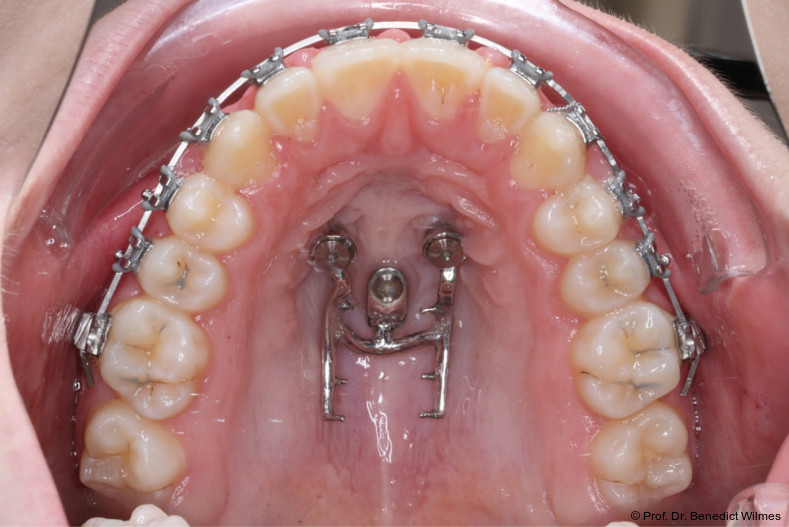 Mehrfachnutzung palatinaler Miniimplantate: Oberkieferexpansion und Molarenintrusion