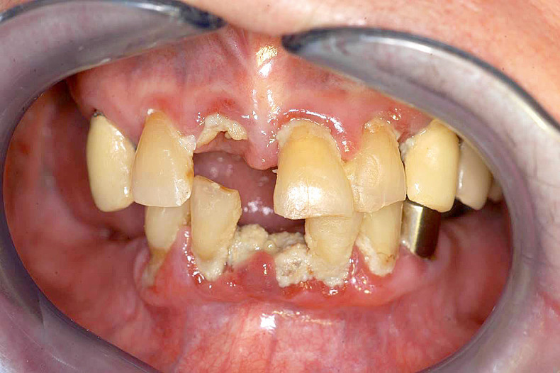 In Verbindung mit einer kohlenhydratreichen Ernährung und fehlenden Fluoridierungsmaßnahmen können sich bei diesen Patienten ausgedehnte kariöse Destruktionen entwickeln.5 Eine weitere Folge der dauerhaften Plaqueakkumulation sind gingivale Entzündungszustände, die – wenn sie über einen längeren Zeitraum bestehen – ein Risikofaktor für parodontale Destruktionen sein können.15