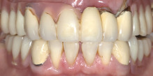 Aufgrund des Verlustes der seitlichen Zähne in allen vier Quadranten und kariös zerstörtem Restzahngebiss kann der Patientenwunsch nach einem gaumenfreien...