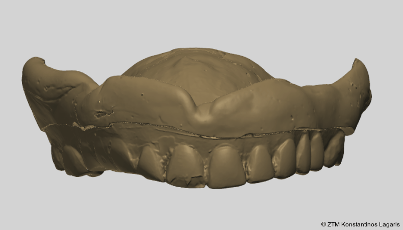 Das LAC Laser Add Center wurde 2009 von den Dentallaboren der Handrich-Gruppe gegründet. Ziel war es, die digitale Fertigung von Zahnersatz systematisch voranzutreiben und zu etablieren. Aus dieser Initiative entstand schließlich das LAC, das heute ein breites Spektrum an zahntechnischen Dienstleistungen anbietet. Vom Metall-3D-gedruckten Modellguss bis hin zur gefrästen Zirkonkrone produziert LAC sowohl für die eigenen Labore als auch für den freien Markt. Während die Primärteile und die Try-in-Prothese gefertigt wurden, wurden parallel auf Basis des Unterkiefer-Intraoralscans ein individueller Löffel sowie eine Bissschablone konstruiert. Die Konstruktion erfolgte mit dem Programm BiteReg der Firma r2 dei exmachina.