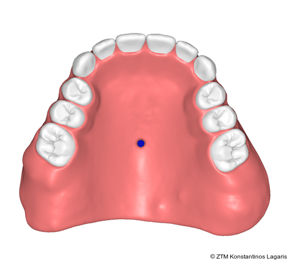 Begonnen wurde mit dem Oberkiefer. Mit dem Programm Baltic Denture der Firma Merz Dental lässt sich eine Totalprothese auf einfache Weise digital konstruieren. Die Scandaten wurden als STL-Files in die Software importiert, anschließend zugeschnitten und einer Modellanalyse unterzogen. Für die Zahnaufstellung wurde zunächst eine passende Zahngarnitur ausgewählt, die zu Beginn nur als Block positioniert werden konnte. In einem weiteren Schritt konnte die Aufstellung individuell angepasst werden. Danach erfolgte die Gestaltung der Gingivaanteile.