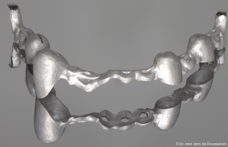 Die Herstellung des Tertiärgerüstes aus einem Nichtedelmetall (NEM) erfolgt durch das Selective Laser-Melting-Verfahren. Im folgenden Beitrag wird das Doppelkronen-Konzept anhand eines Patientenfalles vorgestellt, bei dem in einem vollständig digitalen Workflow natürliche Pfeilerzähne mit Implantaten verbunden wurden.