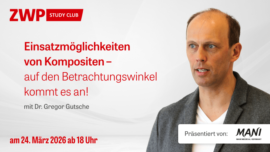 Komposite beschreiben nicht nur einen werkstoffkundlichen Approach, sondern sorgen für ein effizientes operationelles Praxismanagement. Im Webinar zum Thema „Einsatzmöglichkeiten von Kompositen – auf den Betrachtungswinkel kommt es an!“ am 24. März 2026 wird Dr. Gregor Gutsche ab 18 Uhr Beispiele jenseits der klassischen Füllungstherapie zeigen.