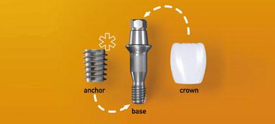 abc – die drei Buchstaben stehen für das innovative Konstruktionsprinzip des Implantatsystems der Heliocos GmbH: Anker – Basis – Krone. Der Anker – das Kernstück des abc-Implantats – kann unmittelbar nach Extraktion eines Zahnes in die vorhandene Alveole eingesetzt werden und stabilisiert ab diesem Moment das umliegende Knochengewebe. Wie über den Wurzelballen eines Baumes die auf die Krone wirkenden Kräfte aufgenommen und in das umgebende Erdreich abgeleitet werden, so funktioniert auch der „Anker“ des neuen abc-Implantats.