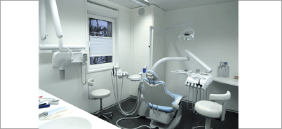 Aussen Container, innen Zahnarztpraxis