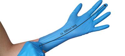 AMPri hat die Produktpalette der Handschuh-Serie BLUE COMFORT erweitert. Die Einmalhandschuhe BLUE COMFORT 300 ECO und BLUE COMFORT 300 ULTRA gewähren durch die extra lange Stulpe (Gesamtlänge des Handschuhes: 300 mm) einen optimalen Schutz gegen Spritzer und zurücklaufende Flüssigkeiten. Die blauen Nitril-Handschuhe, die in zwei unterschiedlichen Materialstärken angeboten werden, sind frei von Natur-Latex und überzeugen durch hohen Tragekomfort und sehr gutem Tastempfinden.