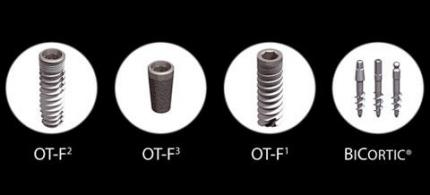 Die einheitliche FOURBYFOUR® Innenverbindung des OT-F2 Schraubimplantats und des OT-F3 Press-Fit-Implantats vereint diese beiden Systeme zu einem umfassenden Konzept, das nahezu jeden Indikationsbereich zuverlässig abdeckt. Das OT-F1 Schraubimplantat ist ein seit Jahrzehnten bewährter Implantattyp mit einem umfangreichen Prothetik-Sortiment. Das selbstschneidende einteilige Implantat BICORTIC® ermöglicht, flexibel auf jede prothetische und implantologische Indikation zu reagieren und eine optimale Versorgung zu gewährleisten.