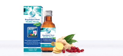 Regulatpro® Dent Healthy Mouth besteht zu 98,6 % aus der kaskadenfermentierten Regulatessenz. Diese ist ein einzigartiger Enzymaufschluss aus biologischen, frischen und sonnengereiften Früchten, Nüssen und Gemüse. Sie erhöht die fundamental lebensfördernden Faktoren – die Energieproduktion (ATP) und den enzymatischen Stoffwechsel in den Zellen. So wirkt sie entzündungshemmend auf Schleimhäute und Zahnfleisch, gleichzeitig regulierend auf die Mundflora und deren Immunsystem. Zusätzlich sind die Wirkstoffe Cranberry- und Ingwerextrakt, Zink und Vitamin C enthalten.