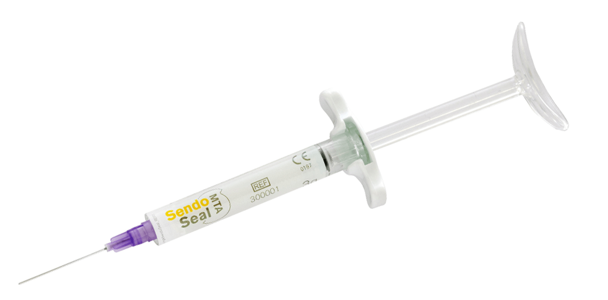 Die Handhabung von SendoSeal MTA ist bewusst einfach gehalten. Das Material wird in einer vorgemischten 3g-Spritze geliefert, die direkt einsatzbereit ist. Eine einzige Spritze reicht für bis zu 25 Wurzelkanalbehandlungen. Mit der im Lieferumfang enthaltenen 24-Gauge-Kanüle kann der Sealer präzise und sauber direkt in den vorbereiteten Kanal appliziert werden.