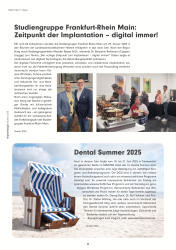 E-Paper PDFMit rund 60 Teilnehmern startete die Studiengruppe Frankfurt-Rhein Main am 29. Januar 2025 in den Räumen der Landeszahnärztekammer Hessen erfolgreich in das neue Jahr. Nach der Begrüßung durch Studiengruppenleiter Muzafar Bajwa M.Sc. referierte Dr. Benjamin Bahlmann (Coppenbrügge) zum Thema „Der richtige Zeitpunkt zum Implantieren – digital immer!“ Dabei zeigte er eindrucksvoll, wie digitale Technologien die Behandlungsqualität optimieren...