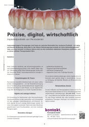 E-Paper PDFPermadental unterstützt Zahnärzte mit einem umfassenden Leistungsspektrum, von der Einzelzahnversorgung bis zur Full-Arch-Lösung. Als Komplettanbieter begleitet das Unternehmen Praxen in allen Phasen: von der digitalen Planung über die Fertigung bis zur finalen Suprakonstruktion...