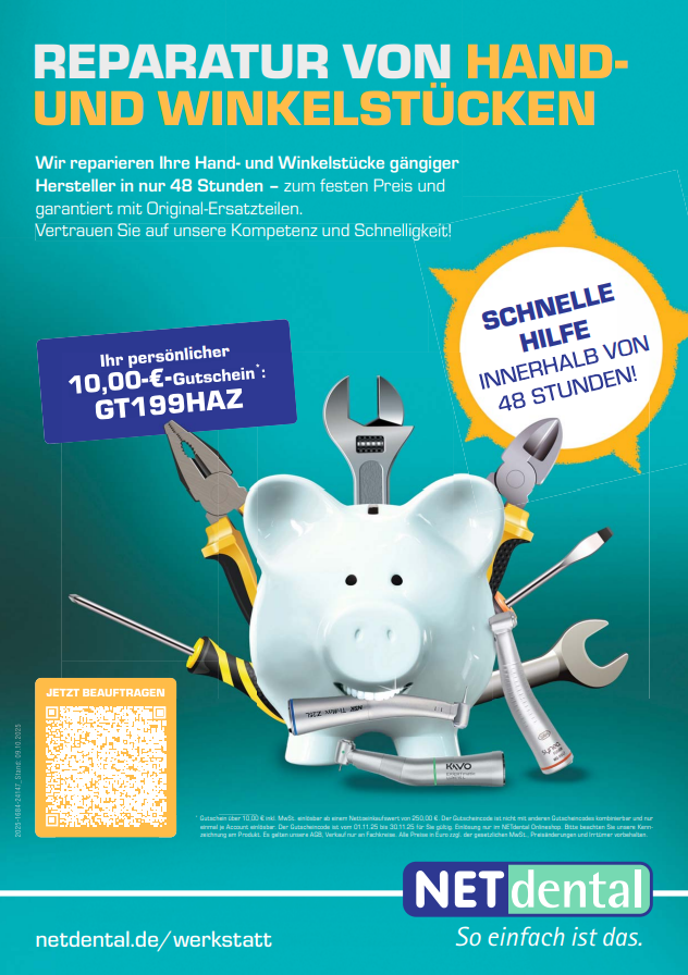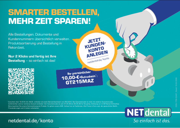 Schnell, einfach und bequem – das ist das Prinzip von NETdental. Der Onlinehändler für zahnärztliches Verbrauchsmaterial ist die erste (Internet-)Adresse für alle Praxisteams, die sich unkompliziert, schnell und günstig für den täglichen Bedarf eindecken wollen.