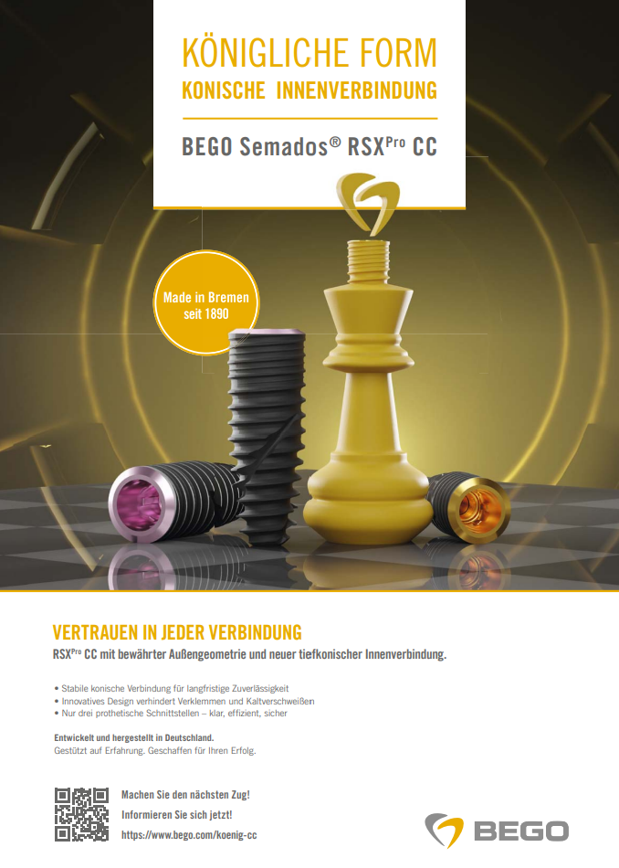 BEGO Implant Systems ist ein international ausgerichteter Anbieter von implantologischen Systemlösungen mit Fokus auf den Digitalen Workflow in der dentalen Implantologie. Das zur familiengeführten BEGO Gruppe gehörende Unternehmen wurde 1990 gegründet und ist seitdem im Besitz der Familie Weiss in Bremen.