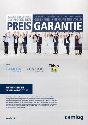 Zum bewährten und erfolgreichen Weg von CAMLOG gehört, dass den Kunden in Klinik, Praxis und Dentallabor moderne, wissenschaftlich fundierte Produkte zu fairen Preisen angeboten werden. CAMLOG ist davon überzeugt, dass nur ein partnerschaftliches Miteinander zum gemeinsamen Erfolg führt. Vorrangiges Ziel ist es, die Kunden durch herausragende Produkt- und Serviceleistungen darin zu unterstützen, ihren Patienten Lebensqualität zu erhalten bzw. zurückzugeben.