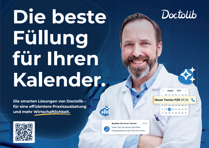 Der Alltag in Zahnarztpraxen ist geprägt von vielfältigen Herausforderungen zwischen Telefon, Terminmanagement und Dokumentation. Doctolib begegnet diesen Anforderungen mit einer smarten, KI-basierten Komplettlösung, die alle zentralen Praxisabläufe in einem System bündelt. Intuitive, vernetzte Module – vom Patientenmanagement über digitale Rezeption bis zur automatisierten Dokumentation und Abrechnung – sorgen für nahtlose Integration und effiziente Organisation. So werden administrative Prozesse vereinfacht und die Versorgung der Patient:innen nachhaltig unterstützt.