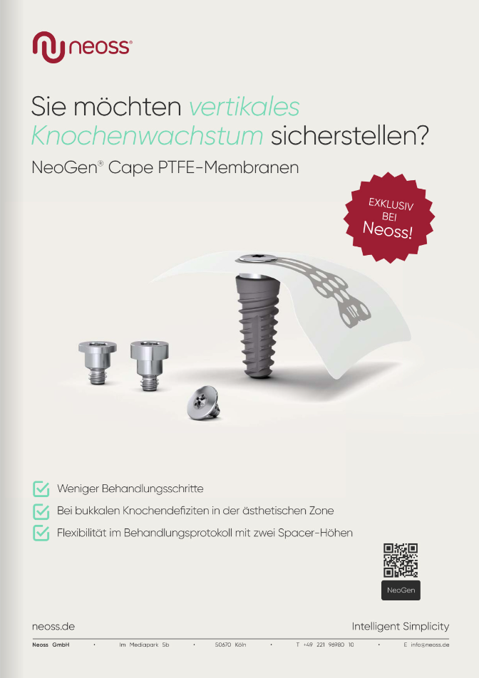 Die resorbierbaren NeoGen® Kollagen Membranen sind hervorragend geeignet für die Behandlung von Knochendefekten, Kieferkammaugmentationen und gesteuerter Knochenregeneration bei Dehiszenzdefekten.