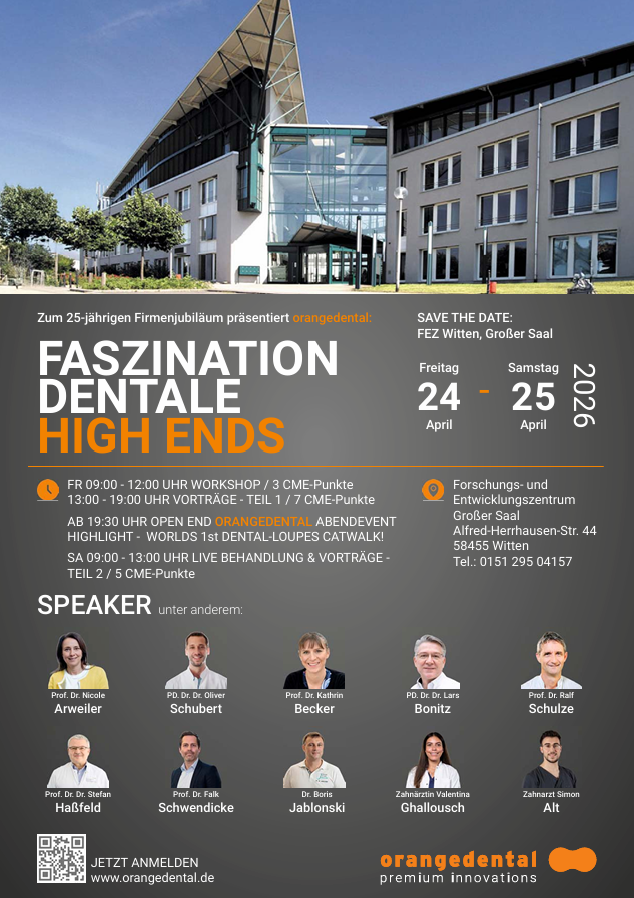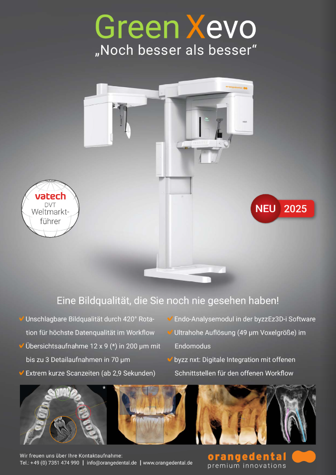 Als Partner des Dental-Fachhandels baut orangedental (Biberach/Riss) seit 1998 das innovative und qualitativ hochwertige Produktportfolio im Bereich Röntgen und CAD/CAM für moderne Zahnheilkunde stetig aus. Erstklassiger Service und zeitnaher Support stehen dabei im Fokus. Einzigartig ist hierbei seit 2006 der 7/365 Tage Hotline-Support.