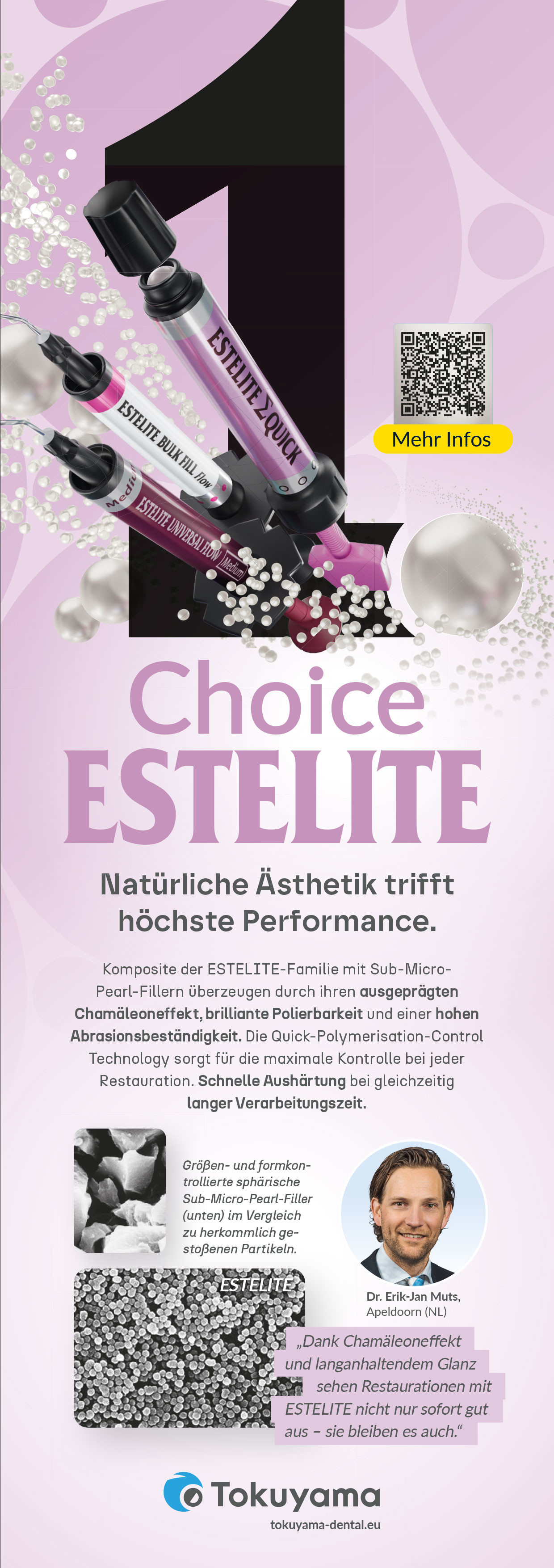 Vor über 40 Jahren hat TOKUYAMA DENTAL mit der Entwicklung und Produktion dentaler Werkstoffe begonnen. Die Philosophie, innovative Dentallösungen zu entwickeln, soll stetig und nachhaltig einen Beitrag leisten, qualitativ hochwertige Produkte für die konservierende und prothetische Zahnheilkunde anzubieten. Die stets innovativen Technologien tragen zu einer kontinuierlichen Weiterentwicklung des Dentalmarktes bei.