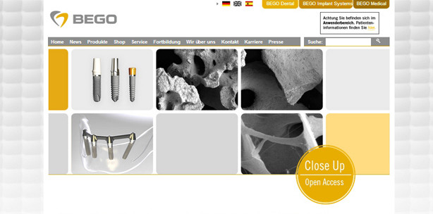 Mit dem neuen Close Up Konzept verfolgt BEGO Implant Systems das Ziel, das wissenschaftliche Umfeld einzelner Therapiekonzepte oder Materialien aus dem implantologischen Bereich zu porträtieren. Hierfür wurde nun ein Open Access Online Portal auf der Firmen-Homepage eingerichtet.