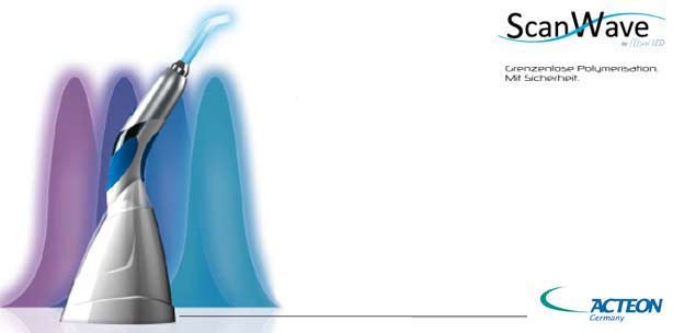 Mit der neuen ScanWave – eine Weiterentwicklung der sehr erfolgreichen MiniLED-Familie – verfügt der Zahnarzt erstmals über eine LED-Lampe, die sich automatisch an das eingesetzte Material anpasst und so für jede Anwendung die optimale Lichtleistung garantiert.