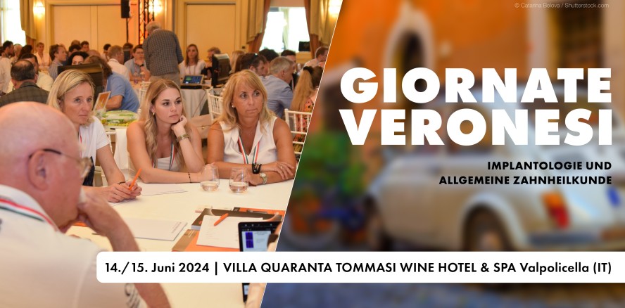 Implantologie und moderne Zahnheilkunde stehen am 14. und 15. Juni 2024 in Valpolicella/Italien auf der Tagungsordnung. Unter der Sonne Italiens bieten die Giornate Veronesi hochkarätige wissenschaftliche Vorträge, Seminare und Table Clinics.