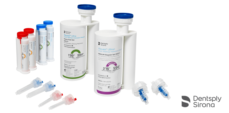 Dentsply Sirona macht die Applikation von konventionellem Abformmaterial jetzt noch einfacher und vor allem effizienter: Die Mischkanülen und Kartuschen wurden optimiert. Durch die neue Mixing-Cube-Technologie wird das Material noch besser durchmischt.