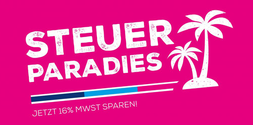 Im Zuge der Corona-Krise hat die Bundesregierung die Mehrwertsteuer von 19 auf 16 % gesenkt, um die Wirtschaft zu unterstützen. DIE ZA geht jetzt noch einen Schritt weiter und lädt ihre Kunden ins „Steuerparadies“ ein.