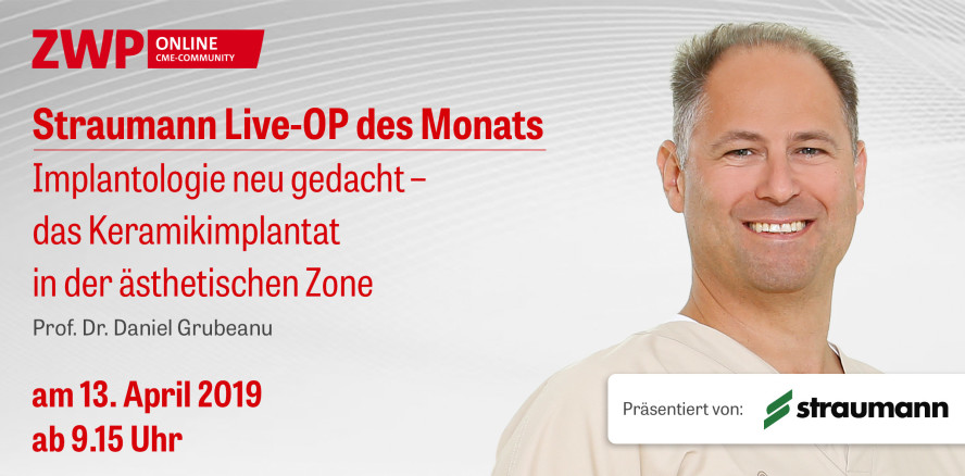 Die Live-OP mit Prof. Dr. Daniel Grubeanu findet am Samstag, dem 13. April, ab 9.15 Uhr im Rahmen des 3. Trierer Forums für Innovative Implantologie unter dem Thema „Implantologie neu gedacht – das Keramikimplantat in der ästhetischen Zone“ statt.