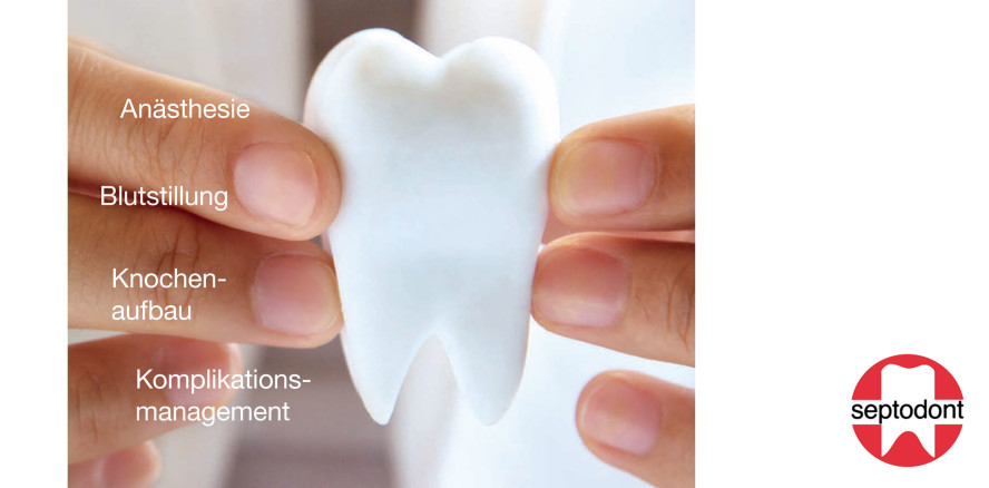 Die Zahnextraktion stellt eine Herausforderung dar, bei der auch Schmerzen und Blutungen eine bedeutende Rolle spielen. Um möglichst viele Optionen einer Folgebehandlung zu wahren sowie Ästhetik und Funktion zu erhalten, bietet Septodont ein komplettes Sortiment an.