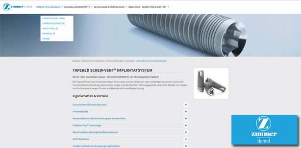 Der neue Auftritt von Zimmer Dental ist online: Auf den modern und übersichtlich gestalteten Seiten bietet Zimmer Dental dem Nutzer umfangreiche Informationen zu Produkten und Dienstleistungen. Zimmer ist bestrebt, kontinuierlich innovative Technologien und Lösungen anzubieten.