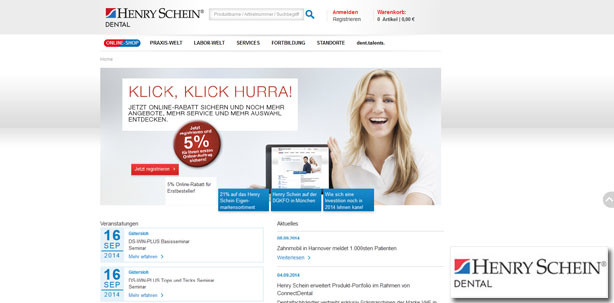 Der neue Internetauftritt der Henry Schein Dental Deutschland GmbH präsentiert sich seit Mai 2014 mit moderner, einfach bedienbarer Navigation. Das gesamte Informationsangebot wurde ausgebaut und lässt sich dank verbesserter Seitenstruktur jetzt noch leichter finden.