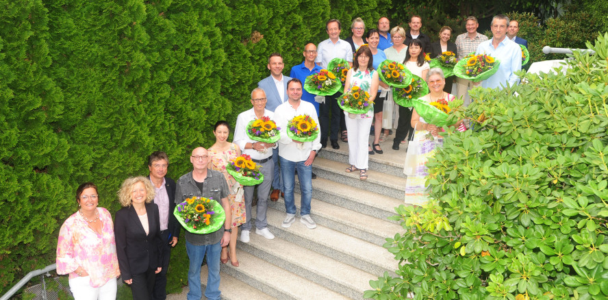 Nach mehr als 2-jähriger coronabedingter Pause wurden im Juni wieder treue Mitarbeiter*innen der Firma Dentaurum in Ispringen geehrt. Das Unternehemn bedankte sich bei den Jubilaren für ihr langjähriges Engagement.