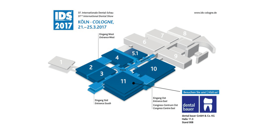 Vom 21. bis 25. März 2017 öffnet die Internationale Dental-Schau, wieder die Weltleitmesse der Dentalbranche, ihre Tore, dental bauer ist vor Ort – Sie auch? dental bauer finden Sie in Halle 11.3, Stand A 008.