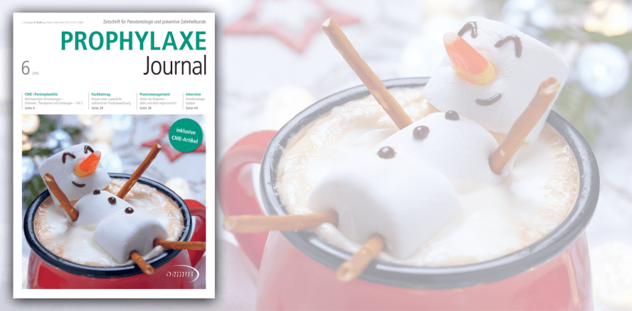 Mit dem letzten Prophylaxe Journal des Jahres kann die Weihnachtspause gleich doppelt genutzt werden, um sich daheim weiterzubilden. Insgesamt zwei CME-Artikel zu den Themen „Periimplantitis und Molaren-Inzisiven-Hypomineralisation“ erwarten die Leser.