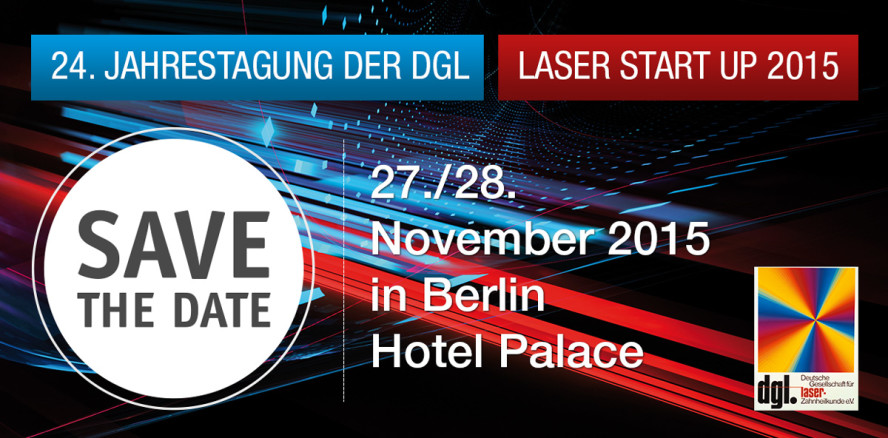 Der Gemeinschaftskongress 24. Jahrestagung der DGL/LASER START UP 2015 wird vom 27. bis 28. November 2015 parallel zur Gemeinschaftstagung DGKZ e.V. und IGÄM e.V. und dem MUNDHYGIENETAG 2015 in Berlin stattfinden.