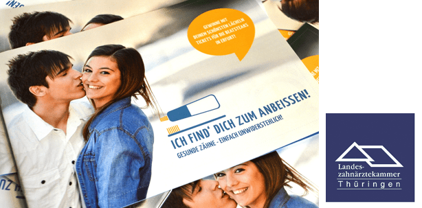 Die Thüringer Zahnärzte werben gemeinsam mit der Jugendzeitschrift SPIESSER für ein umwerfendes Zahnpasta-Lächeln: Rechtzeitig zum Tag der Zahngesundheit am 25. September verteilen sie 40.000 Exemplare ihrer Broschüre „Ich find‘ dich zum Anbeißen!“.