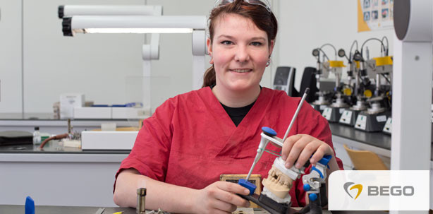 Wiebke Bruns, Azubi bei Boeckhoff & Kampen, besuchte im Juni bereits ihren vierten Kurs im BEGO TRAINING CENTER. Mit dem Kurs „Topfit in die Gesellenprüfung“ möchte sie sich noch letzte Tipps und Tricks vor der im November anstehenden Abschlussprüfung einholen.